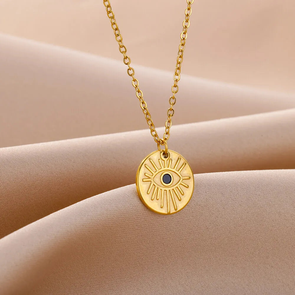 Evil Eye Necklace for Women Stainless Steel Chain Blue Main Stone Pendant Necklaces Vintage Turkish Eye Jewelry Gift