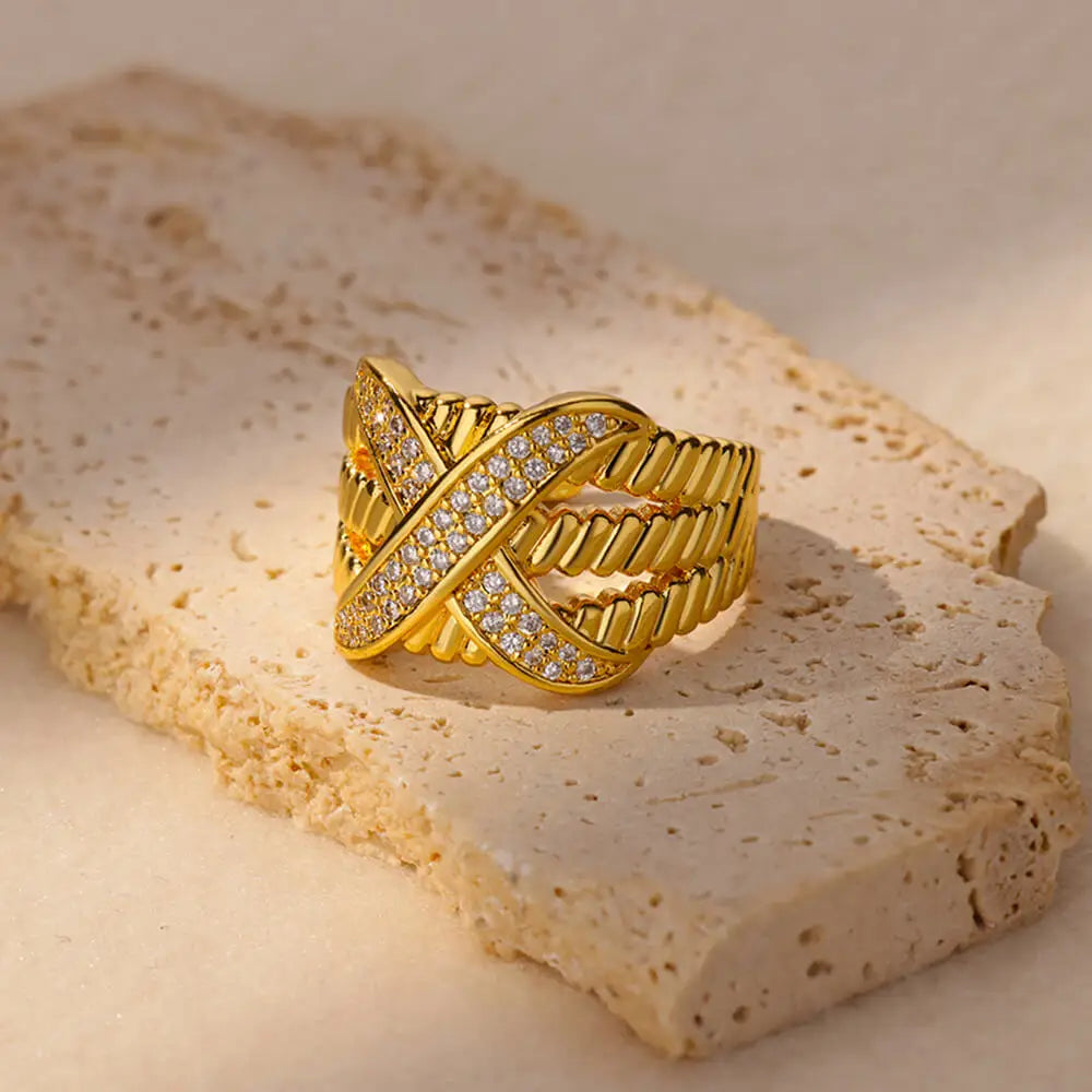 Stainless Steel Wide Open Finger Rings for Women Punk Gold Color Zircon Cross Ring 2024 Trend New Luxury Aesthetic Jewelry